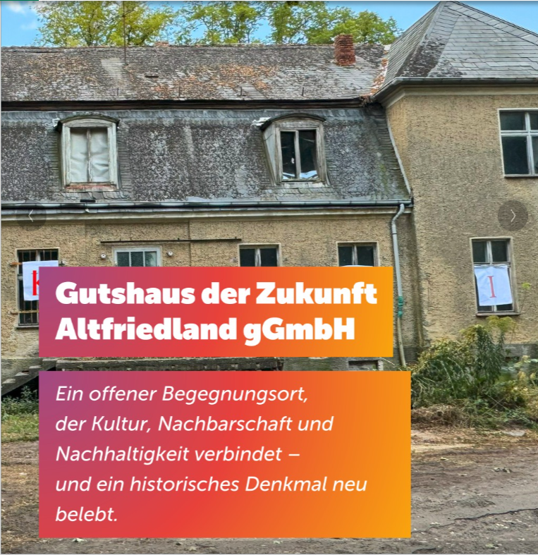 Das Ministerium für Wirtschaft, Arbeit, Energie und Klimaschutz des Landes Brandenburg zeichnet mit dem Wettbewerb BRANDENBURG WIRKT erstmals herausragendes soziales Unternehmertum in Brandenburg aus. Neben drei Jurypreisen wird auch ein Publikumspreis vergeben, der über ein Voting durch die Öffentlichkeit bestimmt wird. Das Gutshaus der Zukunft ist auch mit dabei und wir würden uns sehr freuen, wenn Ihr Euch die Zeit nehmen könnt, kurz für uns zu stimmen: